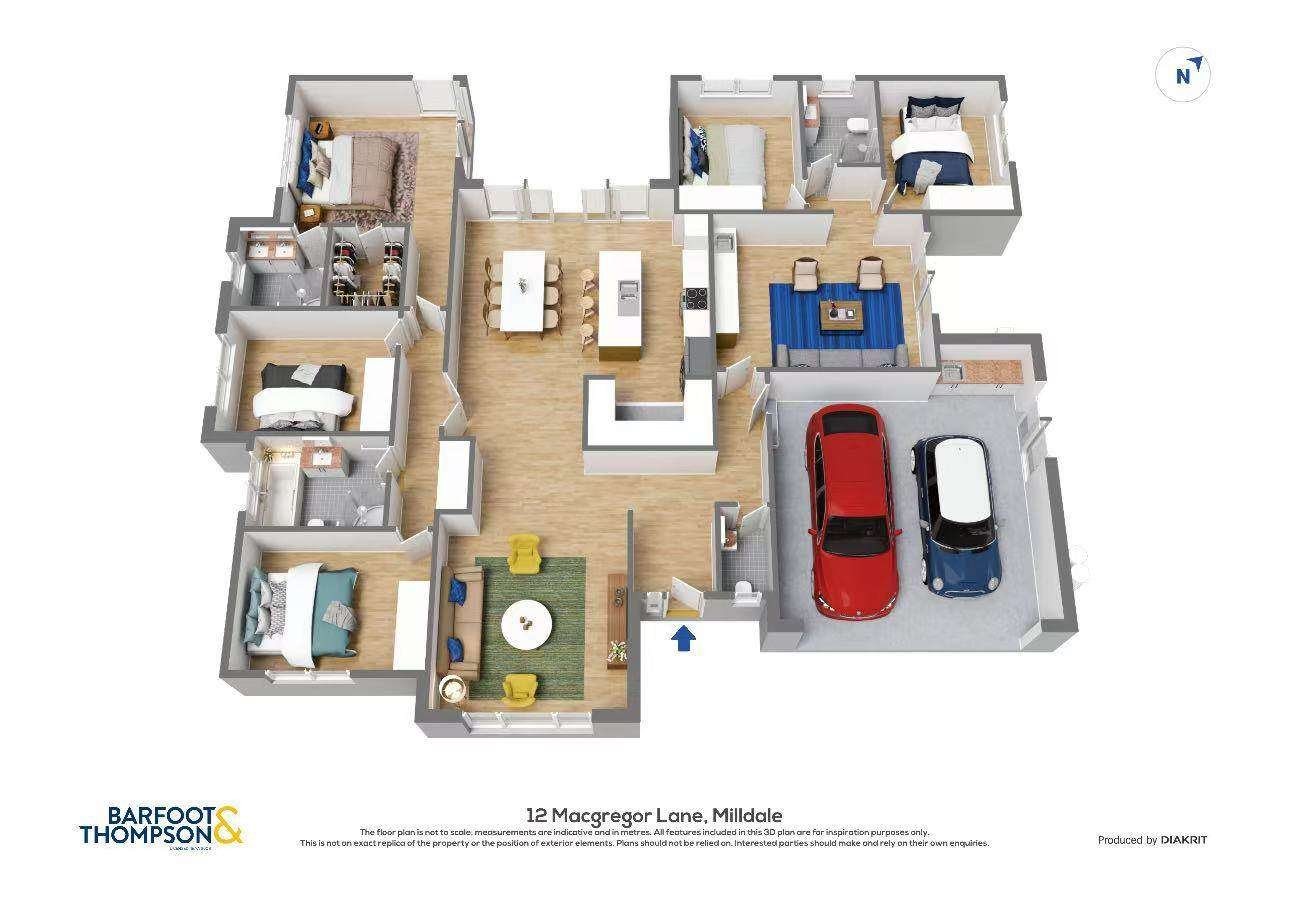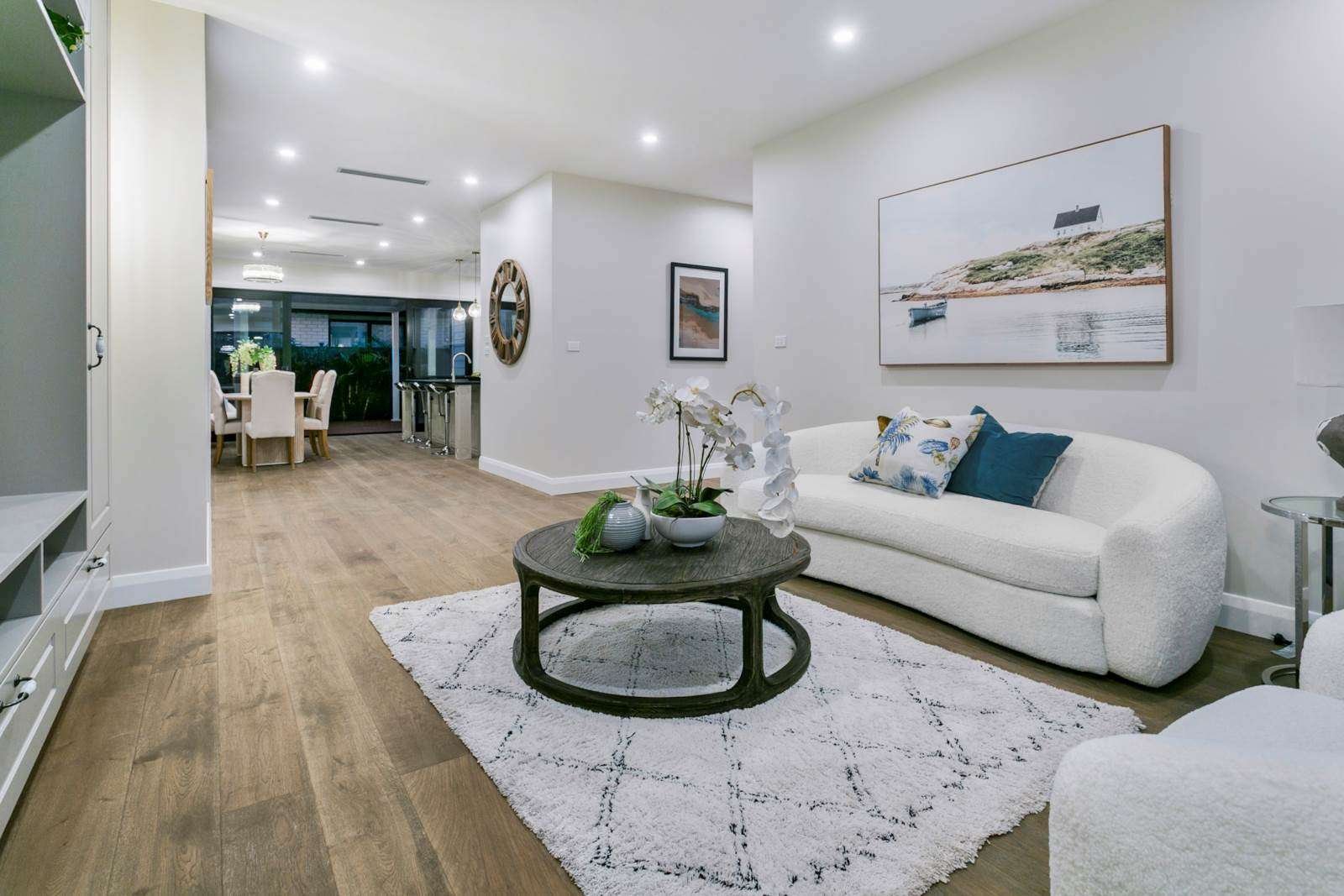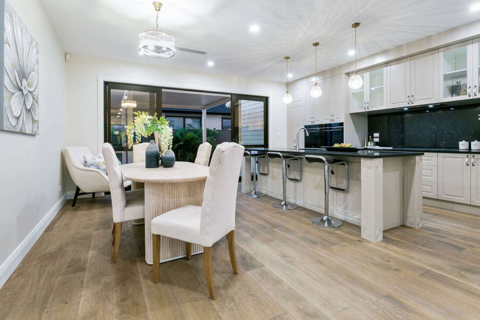 We’ve designed this Milldale show home to combine timeless elegance with modern family living. Set on a generous 530sqm section, the 238sqm residence features five spacious bedrooms, 3.5 designer bathrooms, and a striking blend of brick and weatherboard with a classic white long-run metal roof.