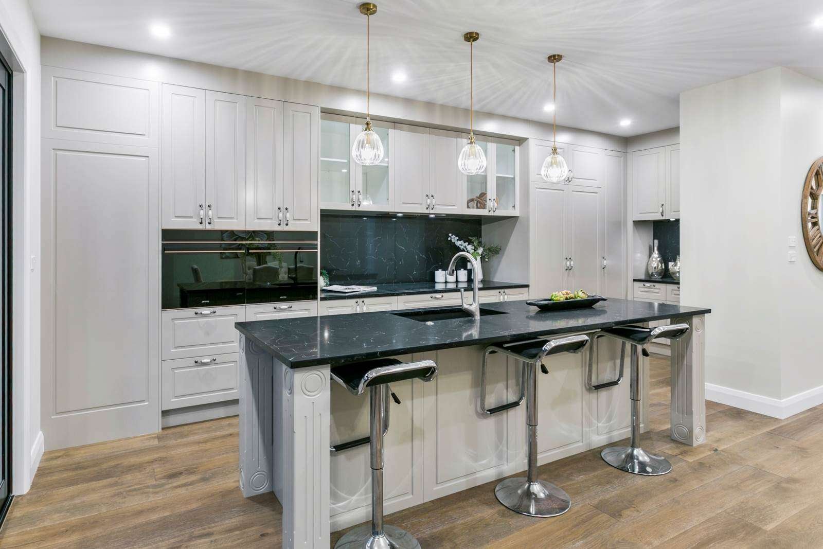 At the heart of the home is a retro-inspired kitchen with premium Smeg appliances and custom detailing, flowing seamlessly into light-filled living areas. A double internal-access garage and thoughtful high-quality finishes complete the design, creating a home that’s both beautiful and functional.